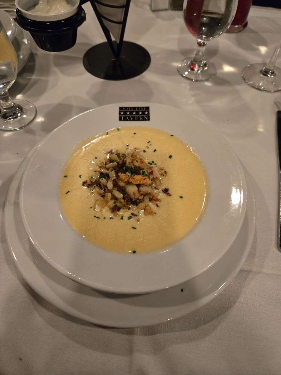 This was our first time at mainline Tavern and we just loved it. We were sat at a table, but we really wanted a booth for comfort and they changed us up right away with no problems. We got the most delicious half-price drinks during happy hour and even though they were out of the bacon scallops, they served up an amazing Special with corn risotto and spinach. That was phenomenal. My spouse loved the goat cheese potatoes as well as the flatbread and we literally cannot wait to return!! Towards the end of our stay, there was a wonderful band playing so we were able to hear a few songs and then they actually stopped in the middle and wished us a good night as we left such a warm place!! Our waiter was patient and very friendly and not overpowering. He was just right we wish we knew his name so we could give him accolades here. Blond hair !